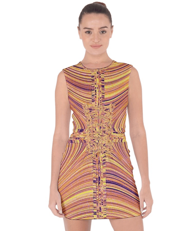 “Electric Field Art XX” as a sleeveless midi dress on CowCow