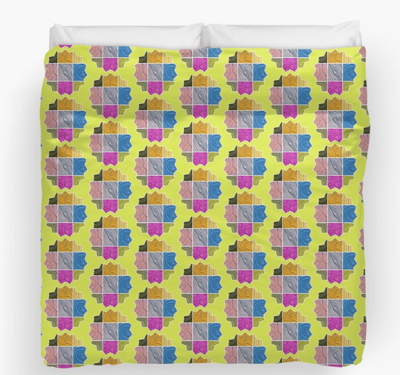 “Electric Field Art Collage II Repeating” as a king size duvet on Redbubble