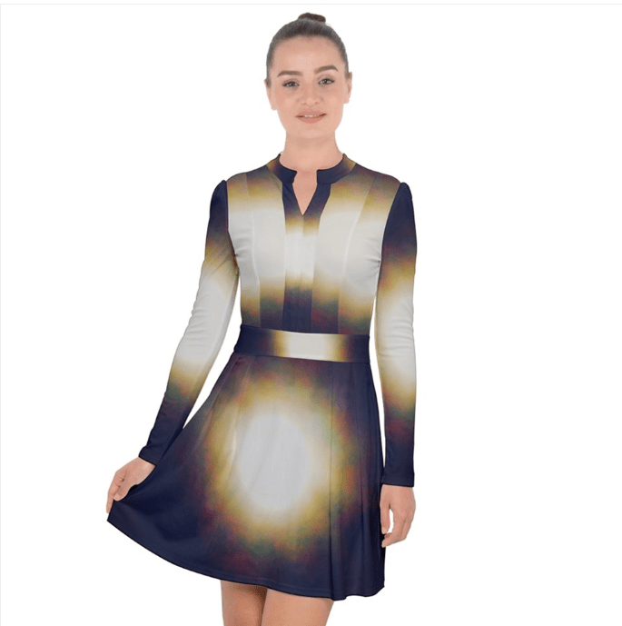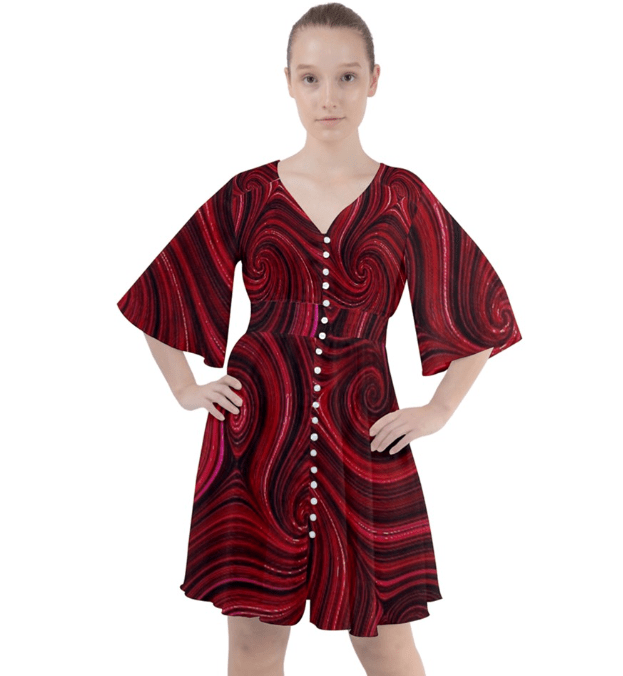 “Electric Field Art LVIII” as a button-up midi dress on CowCow