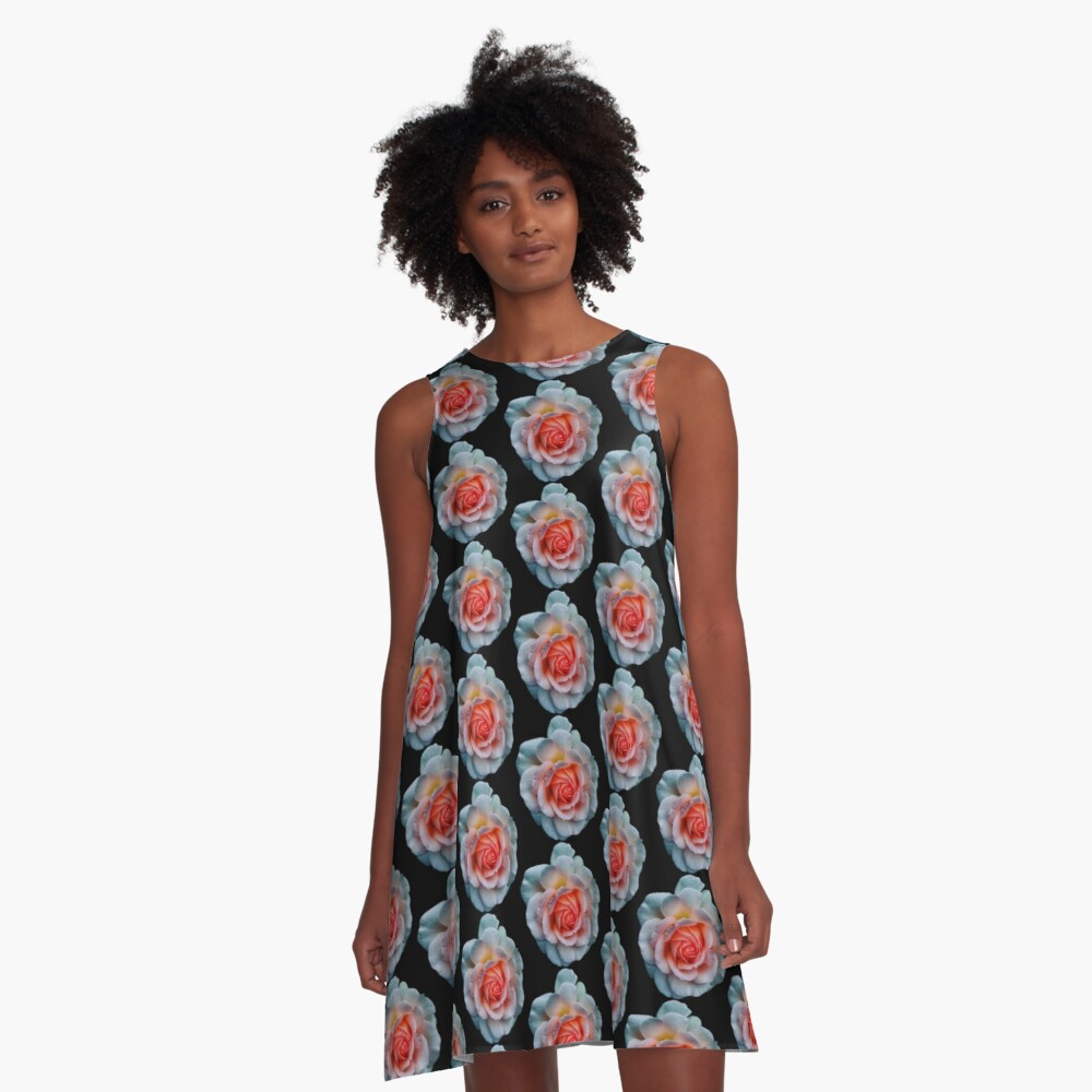 “Favorite Rose Repeating” as an A-line dress on Redbubble